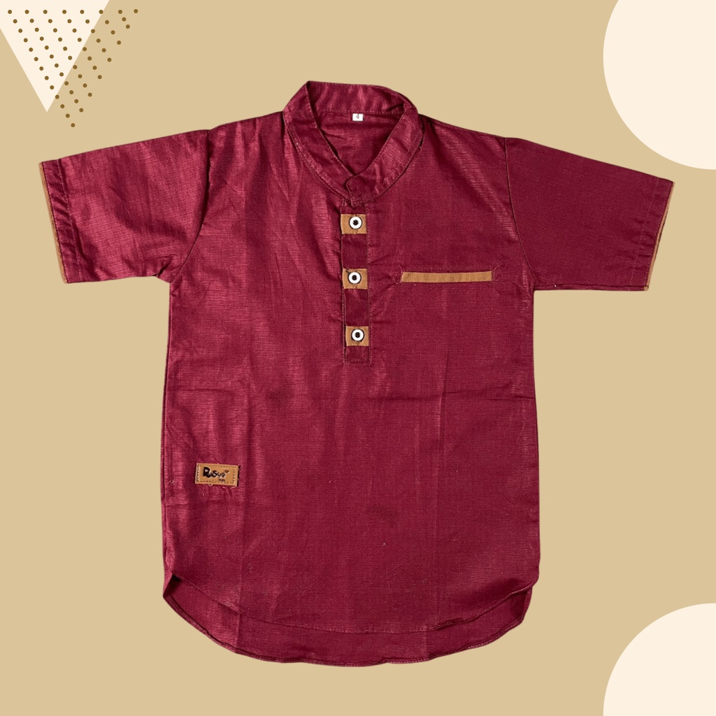 KEMEJA KOKO ANAK KURTA Lengan Panjang MERAH MARUN 1 - 10 tahun HEIJA!